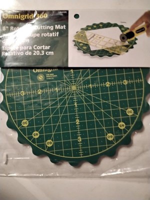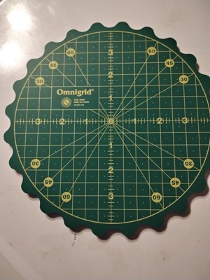 [This review was collected as part of a promotion.] Omnigrid 360 Rotating Cutting Mat is so handy to use!! It stays put when you need it to but will rotate with a scalloped edge to facilitate easier fingertip access. Plenty of lines and angles that are so useful. A must for quilters.