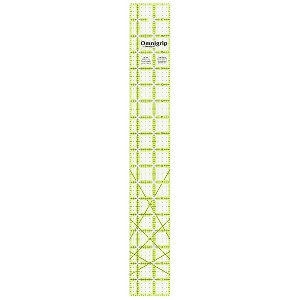 The Omnigrip 2-1/2" x 18" ruler is ideal for cutting short strips and sashing; it has an extra 1/2" for seam allowances. The patented non-slip backing holds the ruler in place during cutting. Use with rotary cutter or a straight-edge blade for a precise cut. It also comes with a left- and right-hand numbering and angle system.