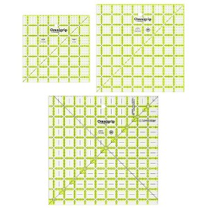 The Omnigrip square value pack from Omnigrid contains one each of 3 square Omnigrip quilting rulers (6-1/2", 8-1/2" and 11/2"); each has an extra 1/2" for seam allowances and diagonal angle lines; use them to cut, square and trim blocks. The patented double-sight lines show up on both light and dark fabrics and the laser cut edges help create a smooth, deep cut. It is best used with a rotary cutter or straight-edge blade.