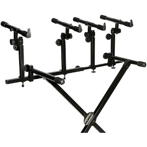 The On-Stage Stands KSA8500 boasts two sets of fully andindependently adjustable arms for the ultimate in 2nd- and 3rd-tier customization. Compatible with any 1" square or 30 mmround-tubed stand, as well as On-Stage Z stands, each of the KSA8500'ssupport arms feature an independent 10-degree increment posi-lok adjustmentfor height, angle, depth and width, providing 43.5" of total widthdistributed over a 2nd- or 2nd- and 3rd-tier configuration. The telescopingstabilizer bar accommodates keyboard stands up to 32" in width, whilenon-slip rubber end caps protect an almost limitless array of keys, laptops,mixers and more.
