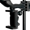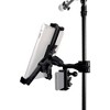 The On-Stage TCM1500 delivers ergonomic, in-performance access to tablet or cell phone. Weighing less than one pound, it's constructed of durable, lightweight plastic for easy transportation that holds up. The design offers a world of attachment and orientation options for perfect adjustment. The tablet and cell holders each of boast protective padding at all contact points. The tablet adjusts from 8" - 12" in height to 3.5" in width, and the cell holders are 2.5" in height by 4" width. Meanwhile, the assembly adapter provides 180 degrees of tilt with a full 360 degree rotation and accepts any standard 5/8"-27 threaded mic stand, or, with the included clamp, attaches directly to any 0.75" to 1" stand or desktop.
