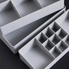 Bring stylish organization to your beauty routine with this Stackable Gray Cosmetic Organizer Tray Set. Designed with multiple compartments and a sleek, minimalist look, this modular storage solution lets you easily arrange everything from nail polish and makeup brushes to serums and lotions.