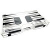 For the one who has it all, OnDisplay has created a limited-edition handmade CrystaLuxe acrylic backgammon set. Complete with dice, playing pieces, and dice cups, each set features stainless steel locks. The ultimate in luxury! Measures 15.1" x 18.75" x 1.25" when opened and 15.1" x 9.5 x 2.5" when folded. The pieces are black and white.