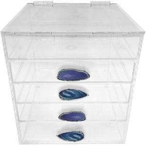 - COSMETIC AND MAKEUP STORAGE DISPLAY CASE (4 LARGE DRAWER, AGATE SLICE KNOBS) - Allows you to organize all your cosmetics, makeup and accessories into a stunning customized beauty counter.