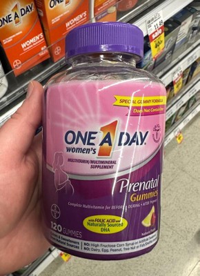 One A Day Prenatal Vitamin Gummies are a yummy prenatal multivitamin for women, formulated with the essential nutrients for moms before and during pregnancy. Our prenatal gummy vitamins for women are a convenient and delicious way to support your health and baby’s development.* With Iodine for normal thyroid function, Vitamin D for bone health, Folic Acid for healthy brain and spinal cord development, and naturally sourced DHA to support baby’s healthy brain & eye development.* These pregnancy vitamins for women in lemon and raspberry flavors are iron free and gentle on the stomach as iron can cause upset stomach.