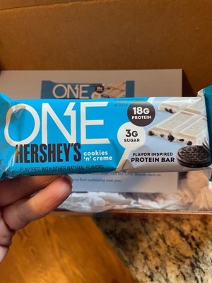 - Enjoy a protein packed ONE bar inspired by the flavors of HERSHEY'S Cookies 'n' Creme candy for breakfast or lunch or bring it with you to the office or gym for a pre- or post-workout snack