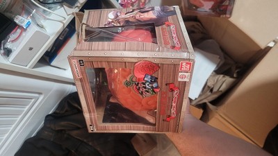 the devil fruit was open but everything inside it’s alright the plastic in the side of the box fall apart buts it all good the cards where no damage the don card was bended in the middle but no creases but i seen reviews off this product some where good and bad but buying this is a risk taker mine came alright no problem with it
