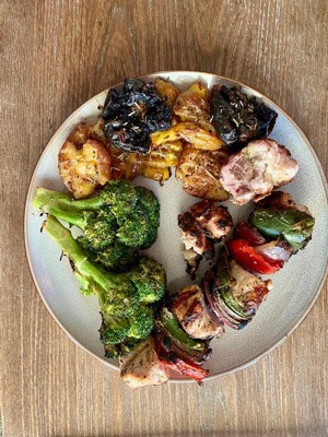 [This review was collected as part of a promotion.] I am really happy with these plates! The design is so unique and modern, looks handmade! The colors are even better in real life. It feels heavy and durable and I love how my food looks in these plates.