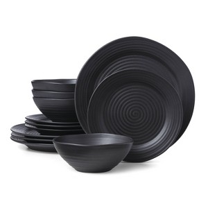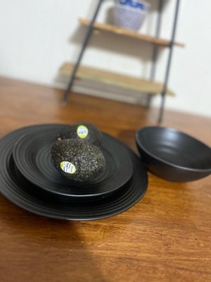 Oneida 12pc Stoneware Dinnerware Set Ridge Black: Matte Black Dishes, Swirl Pattern, Service for 4, Dishwasher-Safe