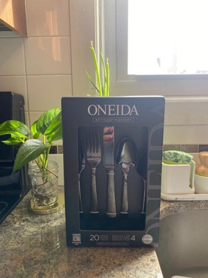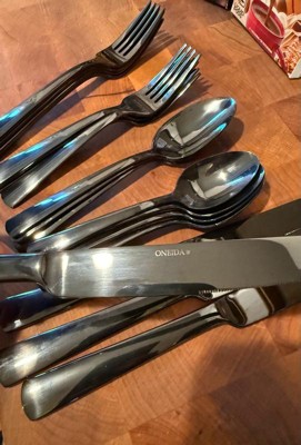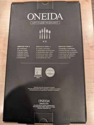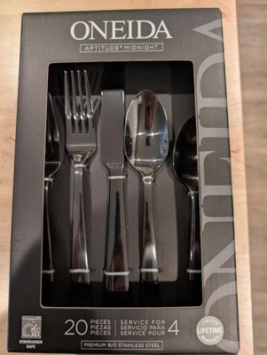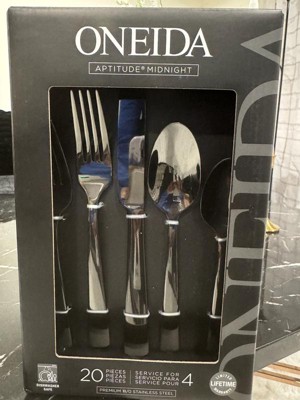 Oneida 20pc Stainless Steel Aptitude Glossy Midnight Flatware Set: Modern Black Silverware Service for 4, Dishwasher-Safe