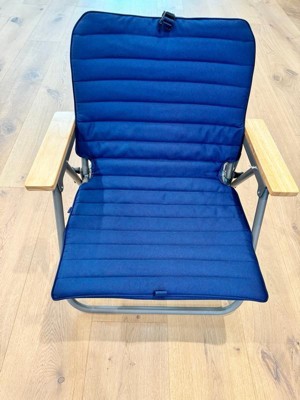 [This review was collected as part of a promotion.] Let me just start by saying, wow! The Descanso Padded Beach Chair in navy blue has completely exceeded my expectations. It not only has a stylish design but also super comfortable too! This chair is an absolute gem for any beach day or outdoor adventure. I love the fact that it's foldable and lightweight. It makes it incredibly easy to transport and store. Plus, the adjustable padded backpack straps make carrying it a breeze, leaving my hands free to carry all the other beach essentials. The quilted, cushioned seat cover feels like sitting on a cloud, and the real wood armrests add a touch of sophistication. I also love that the seat cover is removable and machine washable, making cleanup a total breeze. If you're in the market for a portable chair that's both stylish and comfortable, look no further than The Descanso Padded Beach Chair. Trust me, once you try it, you'll wonder how you ever lived without it!