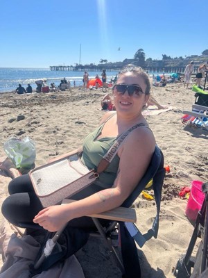 [This review was collected as part of a promotion.] This is such an elegant and chic beach chair! I love the straps on the back that make it easy to carry. It’s so comfy and folds easily. The wooden arm rests make it feel elevated, a nice way to spruce up your beach gear!