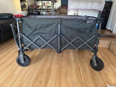 [This review was collected as part of a promotion.] Very durable wagon and storages away very conveniently. Very useful for beach trips and park days with kiddos. Will be everything you need and more