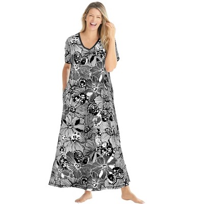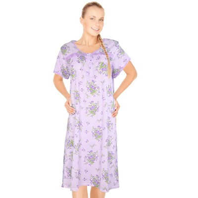Embrace comfort and style with the beautiful prints and full sweeping silhouette of our Bib Front Lounger. Features a sweetheart neckline bib with three buttons in a coordinating pattern to match the hem. Feminine flutter sleeves add a lovely touch, making it ideal for lounging at home or transitioning into a cozy nightgown. Convenient side seam pockets for keeping essentials close at hand. Average length of 54" and petite length of 52" to suit your preference. Crafted from pure cotton for a soft and breathable feel. Easy care with machine-washable fabric. Imported