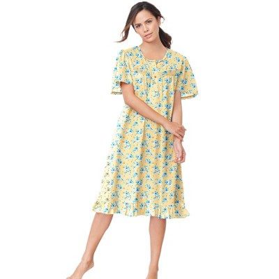 Enjoy ultimate comfort with our lightweight and silky short nightgowns, now in a convenient 2-pack. Short sleeves and a breezy trapeze silhouette keep you cool and comfortable all night long. Vibrant contrast trim on the sleeves, hemline, and V-neck adds a pop of color and style. Perfect for self-pampering or gifting to a loved one. Measures a comfortable 44" in length, ideal for any height. Made from high-quality nylon for a soft, durable feel. Machine washable for easy care and long-lasting wear. Imported.
