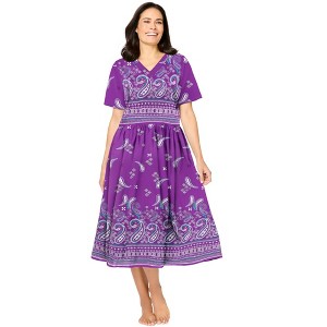 Experience comfort and style with our Long Crinkle Cotton Lounger, featuring a mix of pretty and playful prints. Crafted from pure crinkled cotton, this lounger offers a relaxed fit and a wide sweep skirt for laidback ease. Short sleeves and a V-neckline provide breathability, perfect for lounging or sleeping. 44" length for a perfect fit on all body types. Made from pure cotton for a soft, natural touch against your skin. Easy care – machine washable, saving you time and effort. Imported.