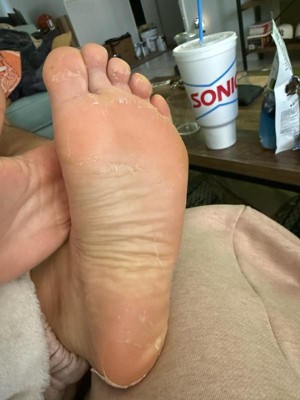 - Peels away dry, rough skin for soft, smooth feet