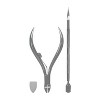 [This review was collected as part of a promotion.] This set is really nice for a quick home pedicure. Really good for clipping toe nails and cuticles. The tool helps with pushing the cuticle skin back and then clip it. It is easy to use. The clipper does need a little getting used to.