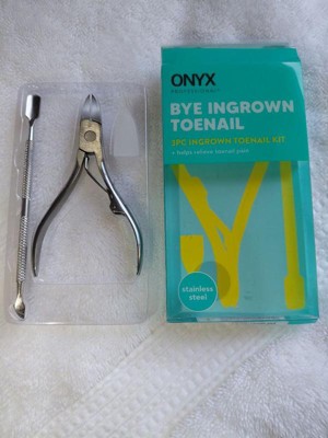 Make your toes happy with the ONYX Professional® Bye Ingrown Toenail Removal Kit. The durable stainless steel nipper trims ingrown nails and cuticles, while the double-ended pusher lifts, cleans, and shapes for feet that look — and feel — healthy and cared for.