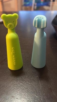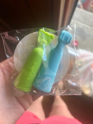 [This review was collected as part of a promotion.] This baby toothbrush and gum scraper from Oogiebear is perfect for cleaning my babies gums and first erupting teeth. It goes on my finger so that I have a good hold on it while cleaning my baby's mouth. The bristles are silicon and feel soft. This comes with a baby tongue scraper as well which I found to be a great addition and not something I have seen in a baby version before. This is good for cleaning milk residue off my baby's tongue. The pair works really well and I would definitely recommend it.