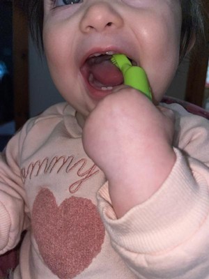 [This review was collected as part of a promotion.] These little finger brushes are perfect to start brushing those itty bitty baby teeth that start coming in fast! I really liked these ones because they fit my finger well! I got this product free in exchange for my honest review.