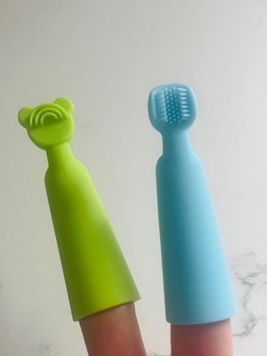 [This review was collected as part of a promotion.] I received this product for free from Influenster in exchange for my honest review. I love the feeling of this and how I can control the pressure/speed of brushing with being able to slip these over my fingers. Way easier to get the job done without having to hold something and my toddler. These are just the cutest little things to own. The silicone brushes are super durable, yet bend to get all the hard spots. I love it and highly recommend!