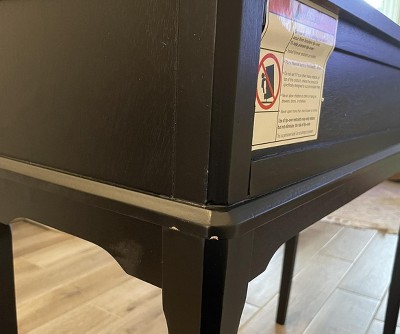 I love that this didn’t require assembly, just screwing on the legs. It looks very simple and classic. My issues are, it’s not terribly well made. After screwing on the legs, it wobbled. Also, one of the drawers wouldn’t come out. You would have to jiggle and shake it to get it out. We managed to solve the problem by switching the drawers out and that worked. I got it on sale and would say it’s worth it for the sale price