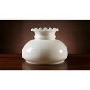 Glass shades add elegance to any lamp. Adds an 'old farmhouse feel' to any room, and blends well with any decor. 7" fitter, requires 7" shade ring (sold separately). 6" H, 8 1/8" bulge. White glass, with faint iridescence. Crimp top. USA made.