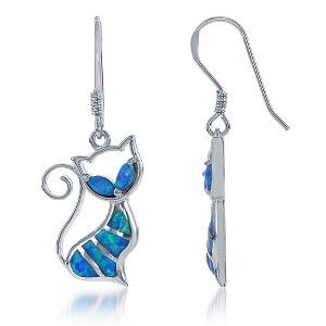 Product Name: Opalata Sterling Silver Blue Inlay Opal Cat Earrings - Blue - Cat, Pet, Animal, Kitty, Animal, Summer, Blue, Opal, Dangling, Earrings, Silver,