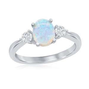 Product Name: Opalata Sterling Silver, Oval Opal and CZ Ring - White - Size 6 - oval, opal, cz, white, ring, triple stone
