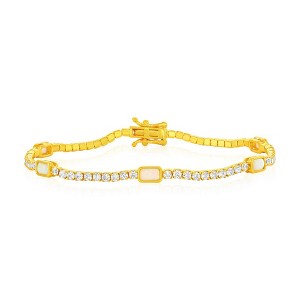 Product Name: Sterling Silver, Rectangle Opal & CZ Bracelet - Gold Plated tennis, bracelet, opal, white, gold plated, cz