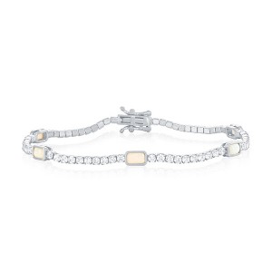 Product Name: Sterling Silver, Rectangle Opal & CZ Bracelet white opal, bracelet, cz, tennis, rectangle