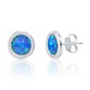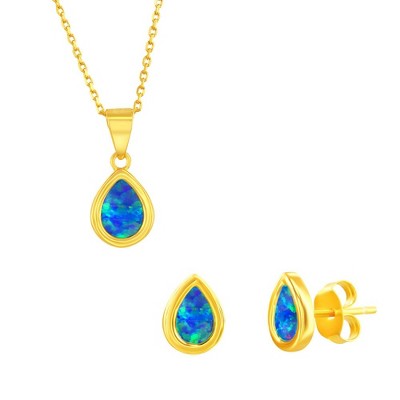 Opalata Sterling Silver, Round Blue Opal Necklace & Earrings Set - Blue - 16+2 Inch