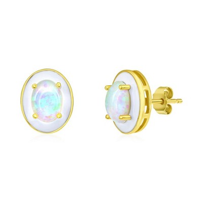 Opalata Sterling Silver Round White Opal with CZ Earrings - White