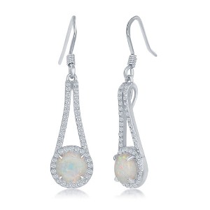 Opalata Sterling Silver, Round White Opal with CZ Halo Long Earrings - White - 1 of 2