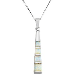 Opalata Sterling Silver Thin Long White Inlay Opal Long 18" Pendant Necklace - White