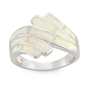 Product Name: Opalata Sterling Silver, White Inlay Opal Ring - White - Size 6 - white, opal, strand, 6, six, waves, graduating, thick, ring, large, big, silver,