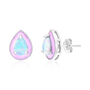 Opalata Sterling Silver White Opal & Pink Enamel Pearshaped Studs - Pink - 2 of 2