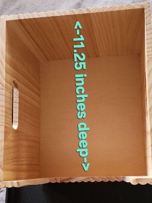 A: Hello Anthony - We appreciate your interest in this Large Wood Bin. The overall dimensions of this item are 9.2 Inches (H) x 13 Inches (W) x 14 Inches (D). We know you will enjoy it. – Joe