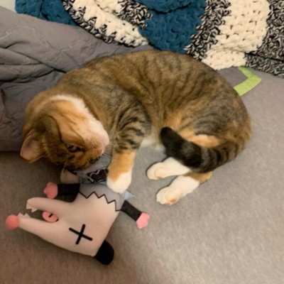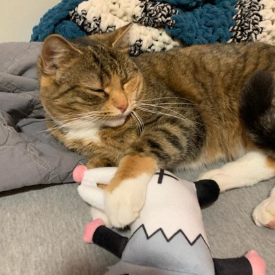 [This review was collected as part of a promotion.] My goofy cat likes this catnip scented stuffed opposum a lot! She was napping like she typically is and I presented it to her . She immediately began playing with it and scratching and biting at it. It is a lot larger than I expected and probably the biggest toy she’s ever had. I’m not sure she’ll carry it around but maybe!