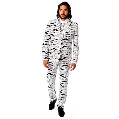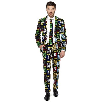 Here we have for you the ultimate in suits, an outfit which will have Star Wars fans googly-eyed and party goers jealous, the officially licensed Men's Stormtrooper OppoSuit. Features a white and black Stormtrooper print jacket, matching trousers, and a black tie. Sizing: Our OppoSuits have a slim-fit design. If unsure between two sizes, we recommend you choose the larger of the two. Please also note that OppoSuit trousers have been purposely designed slightly longer in length than your usual suit, so they look better with trainers and other casual footwear. The material allows you to easily shorten any extra length if required. Cold hand-wash only, suitable for dry cleaning.