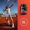 Optimum Nutrition Gold Standard 100% Whey Protein Powder helps build and maintain muscle mass when taken regularly and combined with strength training exercise. Made with whey protein isolate as the primary ingredient, this protein supplement powder ensures that you're getting high quality protein with every serving. The hydrolyzed whey protein powder isolate creates a post-workout drink mix that supports muscle recovery. Each serving of this delicious flavored protein powder provides 24 grams of all whey protein, along with 5.5 grams of branch-chained essential amino acids (BCAAs) to support after workout muscle recovery. Optimum Nutrition protein powder mixes easily using a shaker cup or blended in a smoothie. Gold Standard 100% Whey has fueled billions of workout recoveries worldwide.