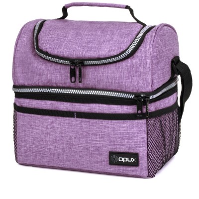 OPUX Insulated Lunch Box Men Women, Large Soft Cooler Bag Work School Picnic, Leakproof Tote Shoulder Strap Kid Adult (Heather Purple, Double Deck)
