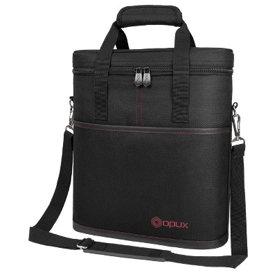 OPUX Wine Bag Single Bottle Carrier Tote Shoulder Strap, Insulated Thermal Carry Case Cooler Travel Picnic Beach Gift (Black, 1 Bottle)