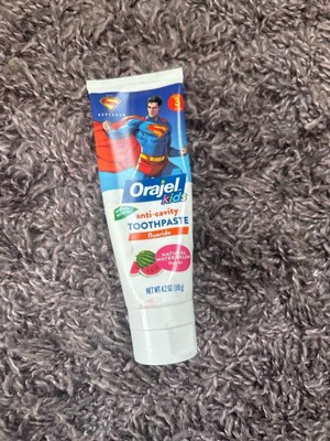 - One 4.2 oz tube of Orajel Kids Superman Anti-Cavity Toothpaste, a fluoride toothpaste for kids ages 2 to 10 years old (Stage 3) that makes them brush like a super hero