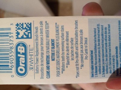 - Package includes 2 Genuine Oral-B 3D White Battery replacement brush heads