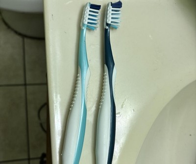 Like the texture of this toothbrush. It seems to work well to clean back teeth. My toothbrush is the lighter color my husbands is the darker one. Just for usage reference. They’re the same age wise.