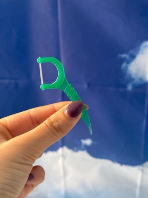 [This review was collected as part of a promotion.] Every time I eat I have one of these bad boys wirh me. It has the floss I need to get in between my teeth and taste minty plus the toothpick. Works wonders for me.