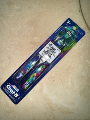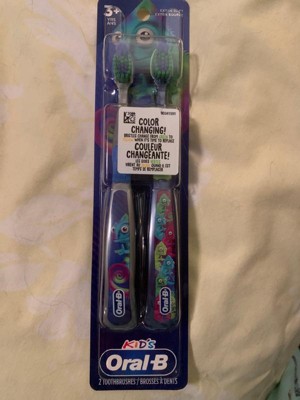 [This review was collected as part of a promotion.] Oral-B kid's, color changing, manual toothbrush 2CT extra soft. For ages 3 years +. When bristles change from green to yellow it's time to replace. 🪥🦷
