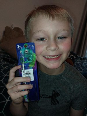 [This review was collected as part of a promotion.] My kids loved the chameleon, especially knowing that the brush would change color. I love the oral b brand and it helps my kids understand how often to change brushes and good dental hygiene.